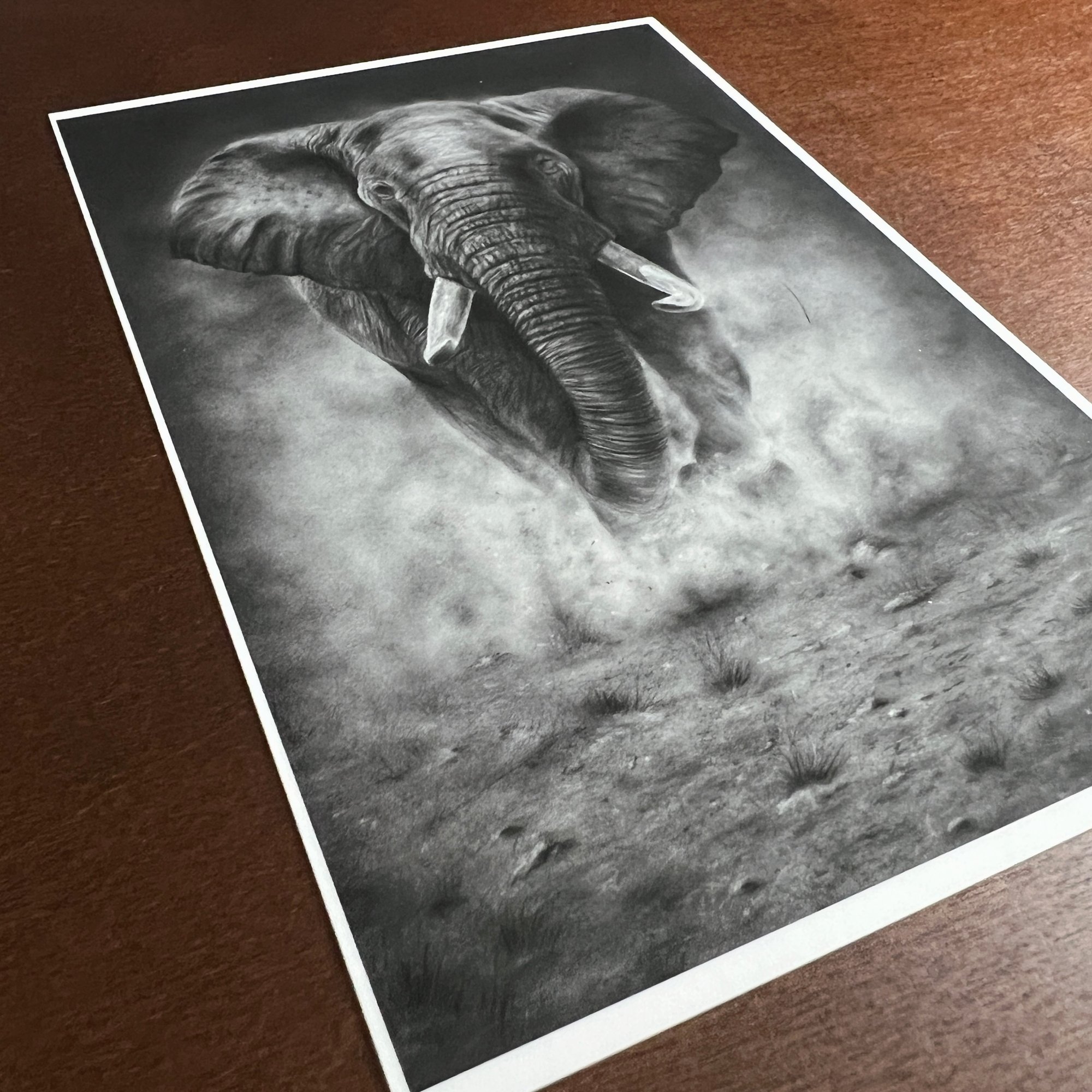 A hand-crafted mini fine art print of my original charcoal drawing — printed using professional Lucia Pro inks for rich depth and lasting quality. Each print measures 5x7 inches and comes mounted in an 8x10 matte, ready to frame or gift.