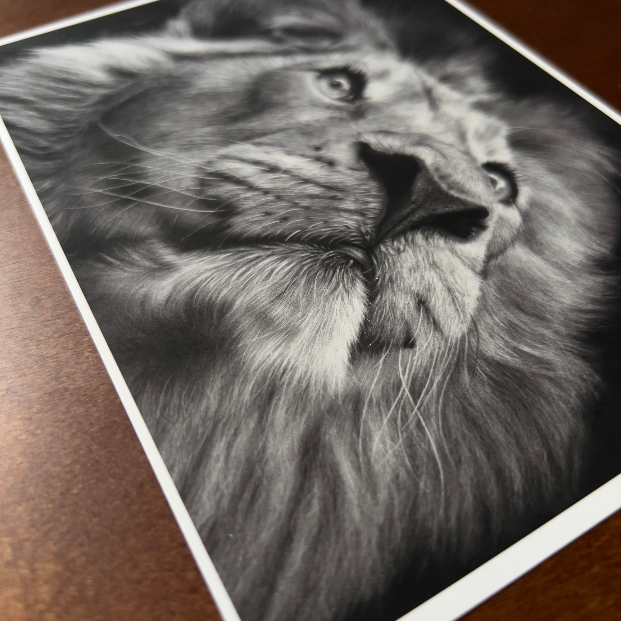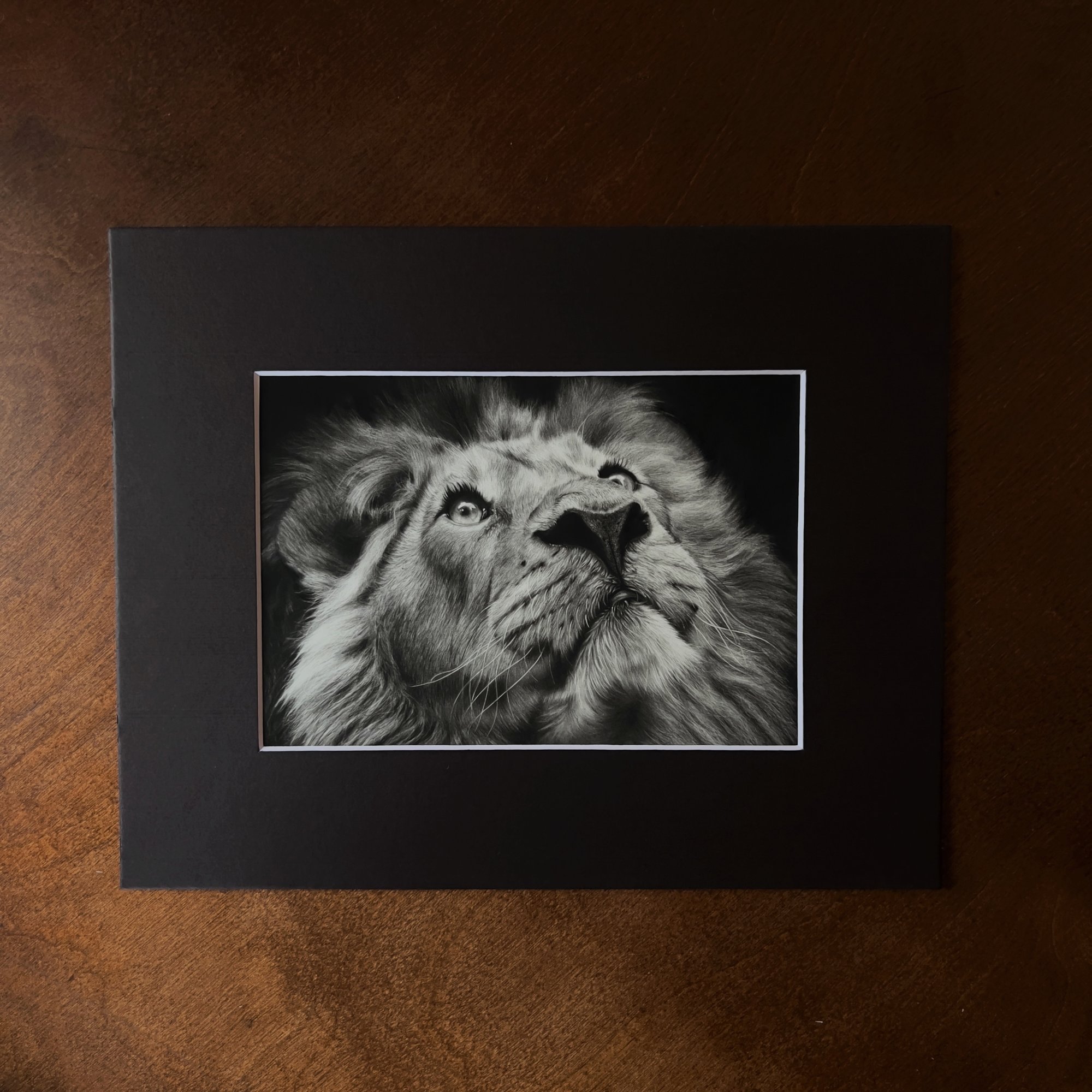 A hand-crafted mini fine art print of my original charcoal drawing — printed using professional Lucia Pro inks for rich depth and lasting quality. Each print measures 5x7 inches and comes mounted in an 8x10 matte, ready to frame or gift.