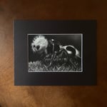 A hand-crafted mini fine art print of my original charcoal drawing — printed using professional Lucia Pro inks for rich depth and lasting quality. Each print measures 5x7 inches and comes mounted in an 8x10 matte, ready to frame or gift.