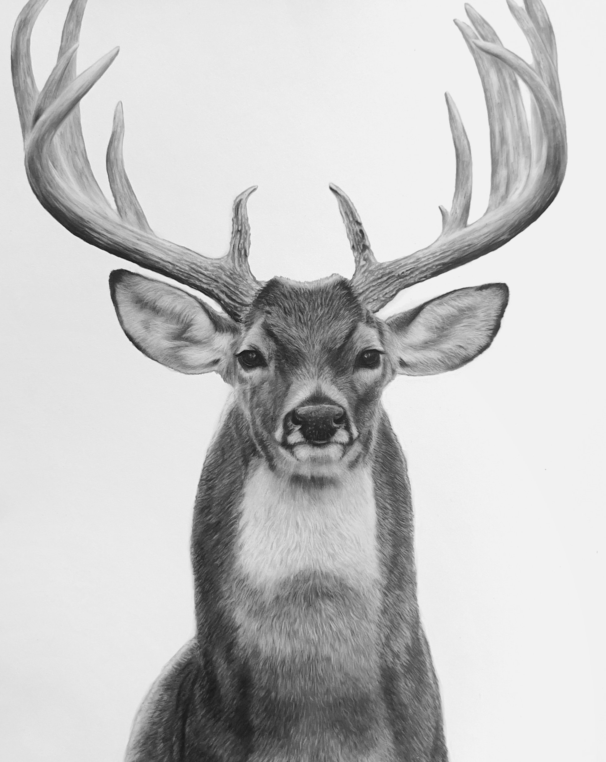 Commanding yet calm, Prince of the Forest is a portrait of quiet strength. This detailed charcoal drawing captures the elegance of a young buck — alert, composed, and standing with a steady authority that speaks to the wild soul within.