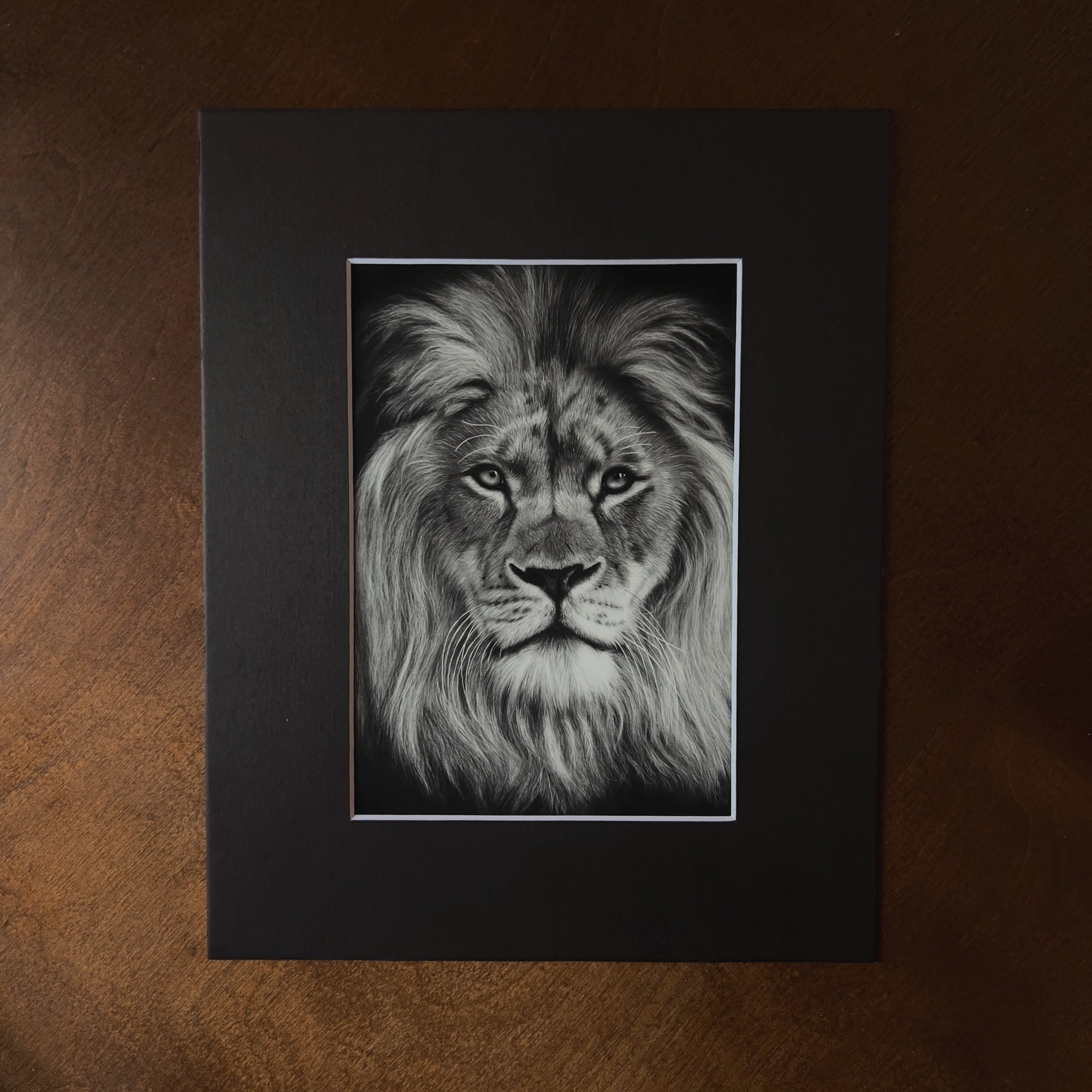 A hand-crafted mini fine art print of my original charcoal drawing — printed using professional Lucia Pro inks for rich depth and lasting quality. Each print measures 5x7 inches and comes mounted in an 8x10 matte, ready to frame or gift.